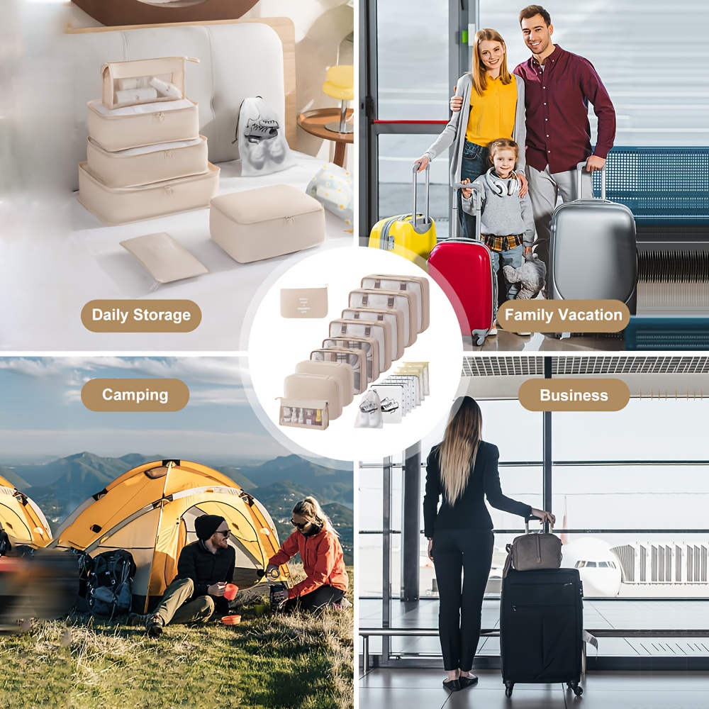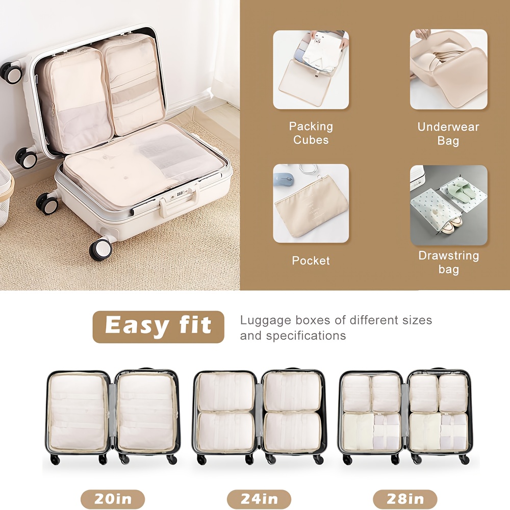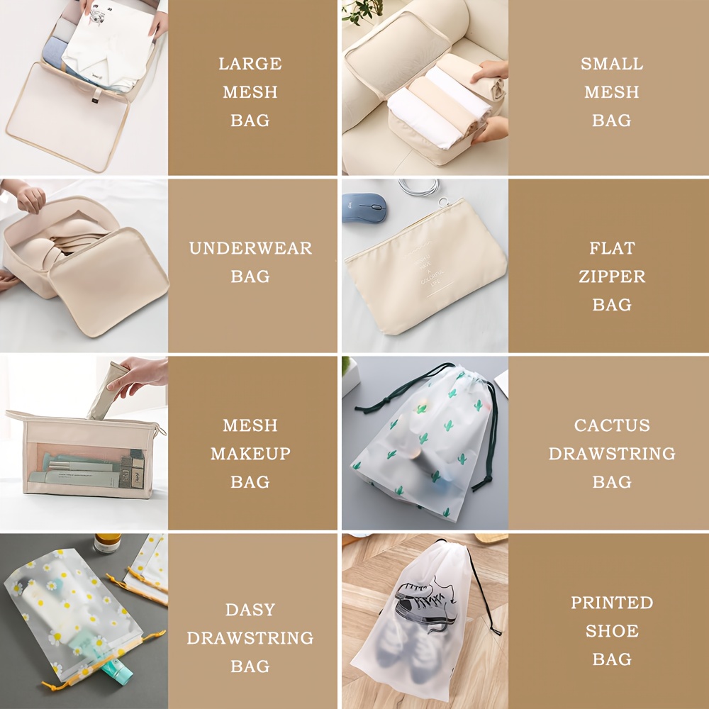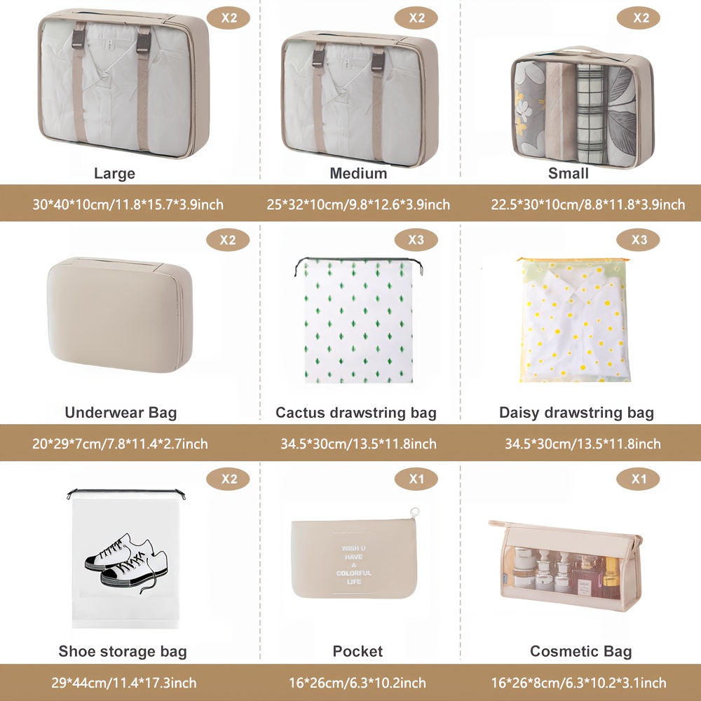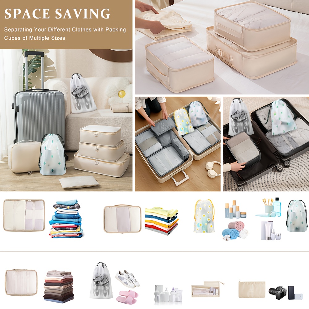 18pcs Travel Organizing Bag Set | Packing Cubes, Washbag, Clothing Bags, Underwear Bag, Drawstring Bag, Toiletry Bag, Shoe Bag, Suitable for Backpacks, Suitcases, Travel Gear, Back-to-School, Casual Style, Available in, Pink, Grey, Navy